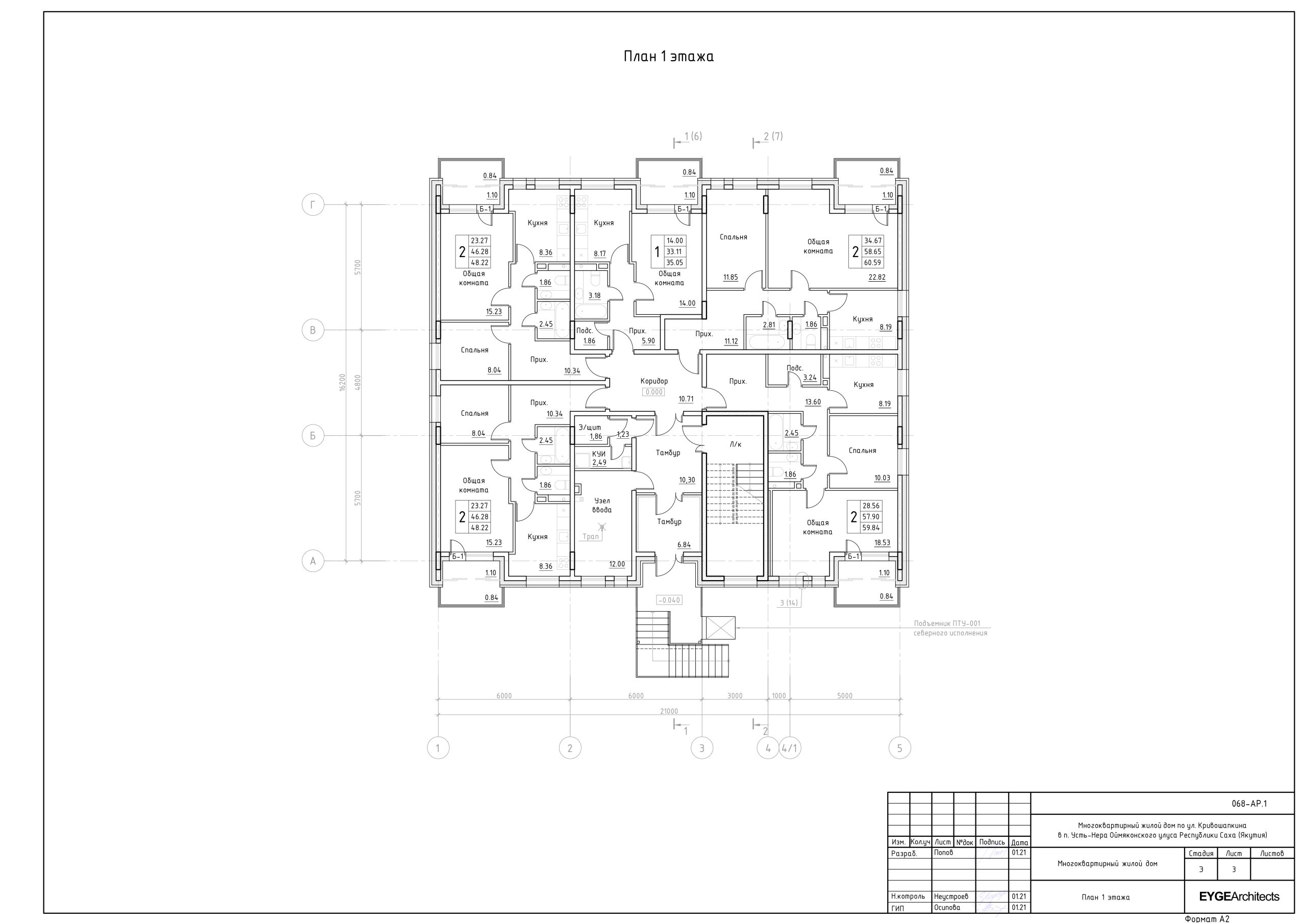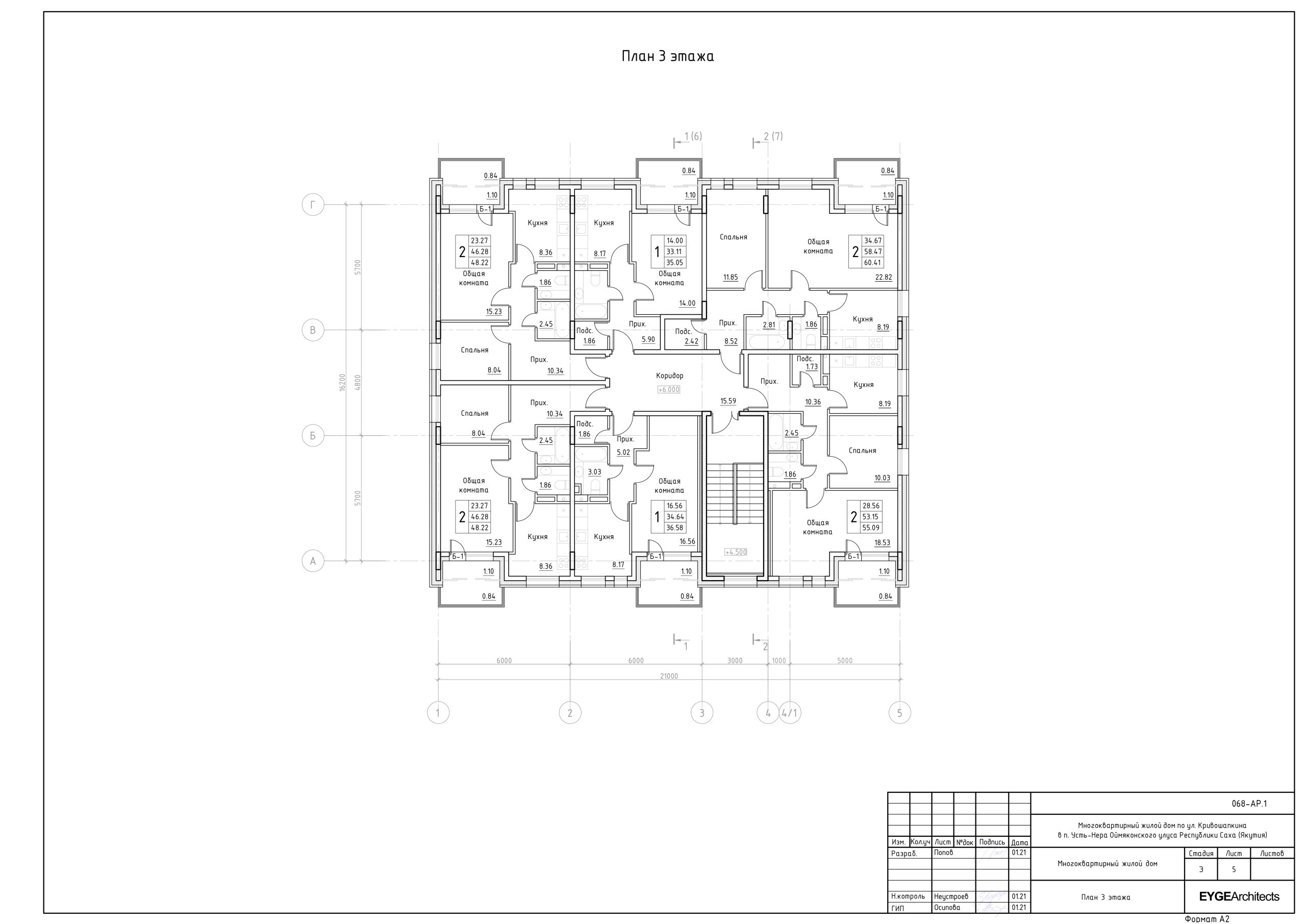 Многоквартирный жилой дом состоит из одной секции, в плане имеет прямоугольную форму с габаритными размерами в осях 1-5-А-Г - 21,0 х 16,2 м. Жилой дом имеет 3 этажа с высотой этажа 3,0 м от пола до пола, 2,7 м от пола до потолка. Архитектура данного объекта выполнена в современном стиле. Планировочные решения квартир предусмотрены максимально комфортными. Фасады здания решены в сдержанном строгом современном стиле.